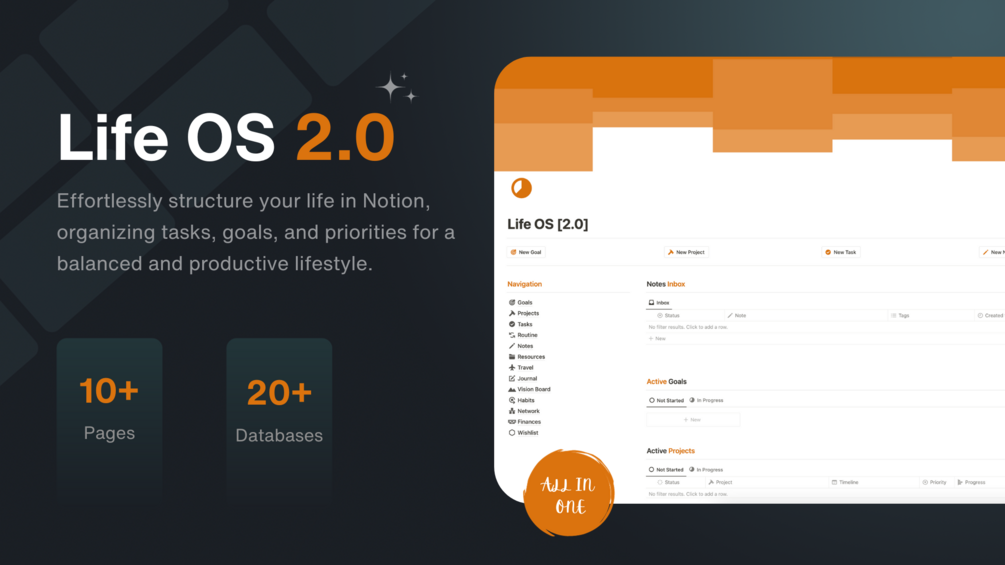 The Life OS template is a comprehensive tool designed to assist in managing every facet of your life. With over 10 customizable pages, it provides a ready-to-use framework for organizing and optimizing various aspects of your life.